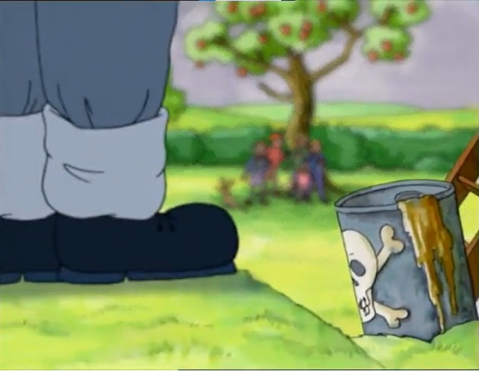 I love everything about this story. The design of the barber himself is absolutely genius, coming off as a generally normal design that is easily twisted when necessary into being genuinely unnerving and uncomfortable. Seriously, the sequence where we get a couple of full screen shots of his head as he hovers over one of the kids reflected in his eyes, explaining what he does, is so off-putting and terrifying that it alone could elevate this whole episode if it were of lesser quality.