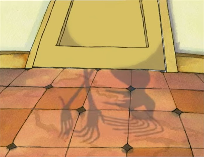 The Spaghetti Man gets right to it in its portrayal of a misbehaving child and the setup of its creature that seems tailor made to get young children to actually eat. There are a lot of good horror elements here that are quite effective, from the focus on the latch of the front door opening and being followed by silence and the fact that your monster is primarily a shadow (shadows are always a positive to use). The payoff to it all is also horrific in a wonderful way, really upping someone getting their ‘just desserts’ in a story like this. Even something that may come off as silly, such as The Spaghetti Man coming with the scent of flour in the air, works here in setting the atmosphere.