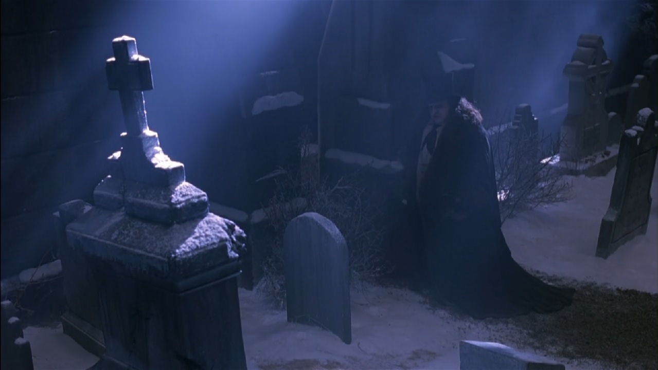 Danny DeVito's Penguin is usually talked about in regards to his design, and when it comes to Burton's Gothic world, it's a great one. A grotesque, sideshow-like outcast, shunned by society and those that deem themselves normal (even approaching him carefully when they're working for him and he's seen as a hero), DeVito's work seemed, for a while, to be very underrated here. His Oswald Cobblepot is rightfully angry; a pent up ball of rage by how he had been dismissed, yet DeVito's work once Cobblepot is above ground is what really layers the character. His awful attempts at trying to fit in and become something he isn't is great in how truly not-great it comes off. Cobblepot can't fit into what Shreck proposes for him (as a mayor candidate), it's not who he is, and his final stripping of what people tried to build upon him as he voices who and what he is is wonderful. Special mention should also be given to DeVito's work in the cemetery, as he tries to portray himself to the press.