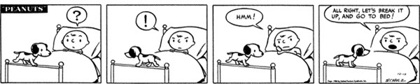 Further down the list we'll have Peanuts take on people observing their pets and how they go about their own day, while this one centers along pet owner's occassional thought of "I wonder what my pet thinks of me while we're interacting."