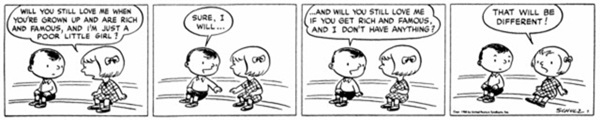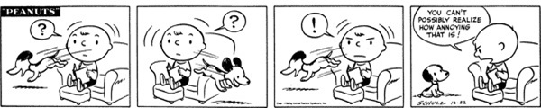 There was never a question as to which strip would be my favourite from its intial few months. It is such a simple idea just as simply executed that I do genuinely think about it often (even when there's nothing Peanuts related thing to write or going on) and it always makes me laugh.