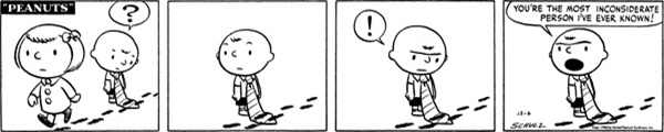 Chalk this one up to what I had touched on in the previous strip, since this one hit me specifically for Charlie Brown's use of the word 'inconsiderate.' It is such a simple thing but really stuck with me and always made me laugh whenever I saw it.