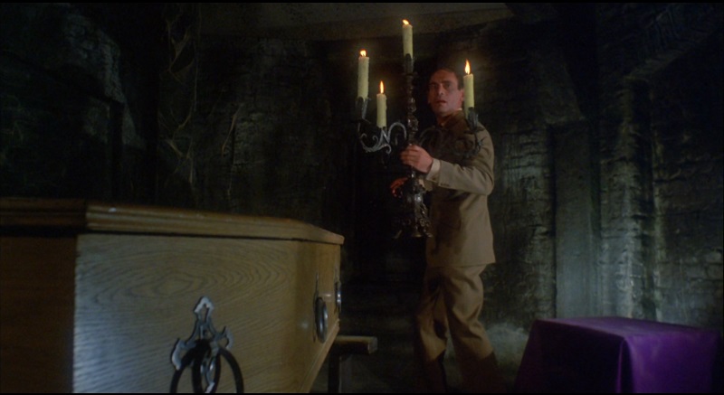 I like the way that it ties into one of the stories from the film, it’s a neat touch. Someone talking at the audience doesn’t work as well here as it did for Torture Garden. Needs more manic Burgess Meredith. Everything needs more manic Burgess Meredith.